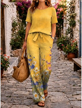 Per donna Gamba larga Pantaloni Estivi Pantaloni Vacanza Streetwear Casual Lunghezza intera Vita media Grafico Geometrico Coulisse Tasca Stampa Confortevole Inelastico Quotidiano All'aperto Vacanza