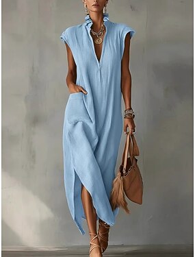 Per donna Abito Midi Finto cotone e lino Abito Boho Elegante Quotidiano All'aperto Spiaggia Vestibilità comoda Semplice Senza Maniche Scollo a V Nero Bianco Rosso Azzurro cielo Estate