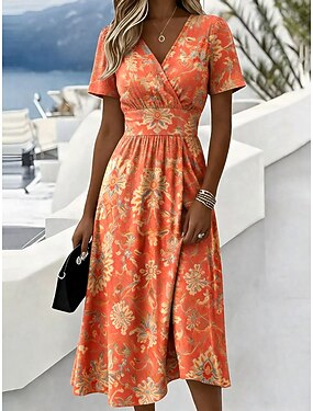 Per donna Abito al ginocchio Abito a trapezio Vacanza Casual Boho Spiaggia Vestibilità regolare Floreale Grafico Manica Corta Scollo a V Blu Rosa Viola Verde Estate Primavera