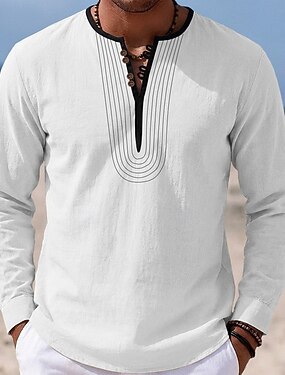 Per uomo Camicia Camicia di lino Camicia popover Camicia Estiva Camicia da Spiaggia Camicia vintage Tinta unica All'aperto Vacanza Bianco Manica Lunga Scollo a V Estate Primavera Abbigliamento