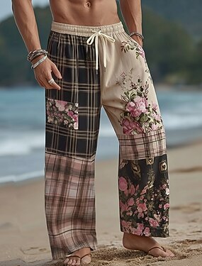 Per uomo Stampa Floreale Etnico Pantaloni Pantaloni Larghi Pantaloni casual Misura del girovita medio Boho Vintage Retrò Casa All'aperto Vacanza Coulisse elastica in vita Pantaloni tipo lino con