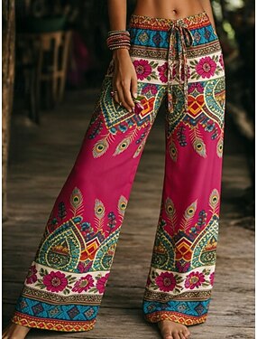 Per donna Pantaloni da vacanza al mare Palazzo casual fluido Pantaloni a gamba larga Grafico Boho Ampio Chiffon Protezione UV Traspirante Pantaloni Surf Spiaggia Vacanze Autunno