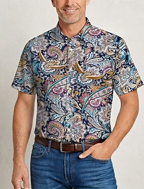 Retrò Vintage Hippie Anni '70 Camicia Maniche corte Hippie Paisley Stile Boho Etnico Costume Per uomo Festival Musicale Feste Abbigliamento quotidiano Adulti Camicia Primavera & Estate