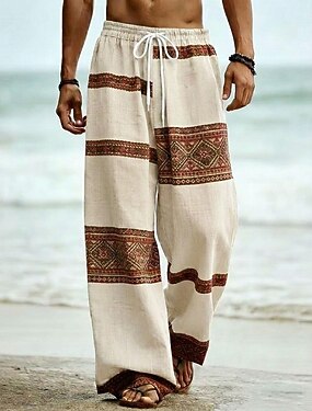 Per uomo Geometrico Tribale Etnico Pantaloni Pantaloni casual Pantaloni Larghi Misura del girovita medio Boho Vintage Retrò Casa All'aperto Vacanza Coulisse elastica in vita Pantaloni tipo lino con
