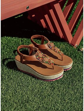 sandali infradito con perline boho da donna: comode zeppe color cuoio con plateau e accenti tribali colorati per resort tropicali e vacanze sulle isole &fughe estive in spiaggia