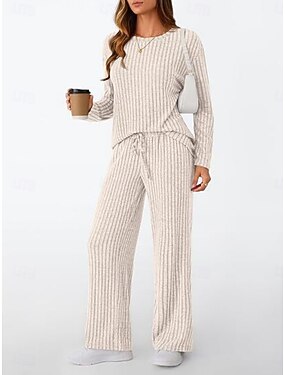 Per donna Set da due pezzi Set di Pantaloni Bolero Top Manica Lunga Girocollo Scollo a V Tinta unica Coulisse Moda Streetwear Casuale Quotidiano All'aperto Nero Blu marino Cachi Primavera Vestibilit