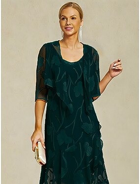 Per donna Abito Midi Vestito in Chiffon Elegante Ospite di nozze Cocktail party Tè Paillettes Pizzo Tinta unica Manica 3/4 Girocollo Verde smeraldo