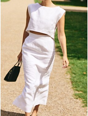 Per donna Set di biancheria in cotone Set di gonne Bolero Top Senza Maniche Girocollo Semplice Arricciato Elegante Moda Streetwear Quotidiano All'aperto Uscire Nero Bianco Estate Vestibilità regolare