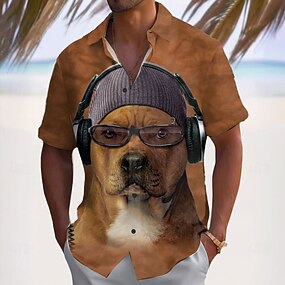 Bono Pitbull di Vincent Hie, camicia da uomo a maniche corte con bottoni, motivo: cane e animale, edizione limitata dell'artista.
