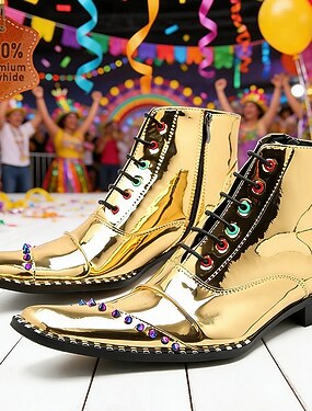 Stivali da festa di Mardi Gras per uomini con borchie oro e arcobaleno – pelle di mucca premium 100% alla moda con borchie colorate uniche ideali per il Carnevale feste ed eventi festivi