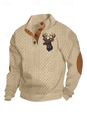 Per uomo Foglia Modello di sollievo Cervo Felpa Casual Manica Lunga Girocollo Vacanza Feste Regalo Blu Borgogna Marrone Verde Girocollo 3D Tutte le stagioni progettista S M L XL XXL XXXL