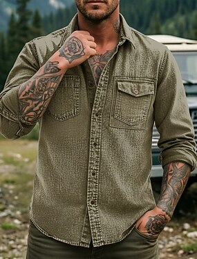 Per uomo Camicia Camicia casual Camicia da lavoro Camicia con Bottoni Tinto in capo Camicia scolorita Nero Borgogna Marrone chiaro Kaki Grigio chiaro Manica Lunga Semplice Colletto a Camicia Casuale