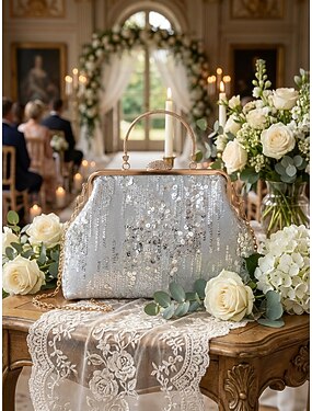 Per donna Borsa Clutch Borsa a cupola Borse a Mano Sintetico Feste Addio al nubilato Ricevimento di matrimonio Paillettes Grande Capacità Pieghevole Geometrico Nero Bianco Rosa