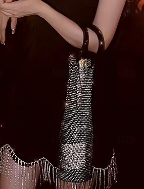 Elegante borsa da sera da donna con manico superiore e catena, in poliestere lucido, disponibile in vari colori, con dettagli scintillanti, perfetta per matrimoni, feste e occasioni speciali.