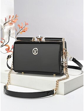 borsa da donna in vernice – elegante design trapuntato, adatta per matrimoni e viaggi, multi-occasione con tracolla a catena dorata