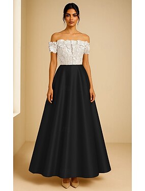Linea ad A Lunghezza al pavimento Lunghezza Tè Abiti da Cocktail Abito da Sera Abiti da festa Elegante Scintillante Stile Celebrità Manica Corta Senza Spalle Festa in giardino Matrimonio Raso Raso