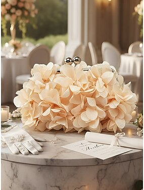 pochette da donna in poliestere con motivo floreale e tracolla a catena corta, elegante design a petalo 3D, opzioni multicolore, borsa da sera leggera, perfetta per matrimoni, feste ed eventi formali