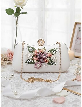 pochette da donna in poliestere con motivo floreale e tracolla a catena corta, elegante design a petalo 3D, opzioni multicolore, borsa da sera leggera, perfetta per matrimoni, feste ed eventi formali