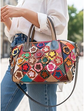 borsa da donna in vera pelle, multiuso, decorazione floreale 3D, elegante e funzionale per l'uso quotidiano o per occasioni speciali