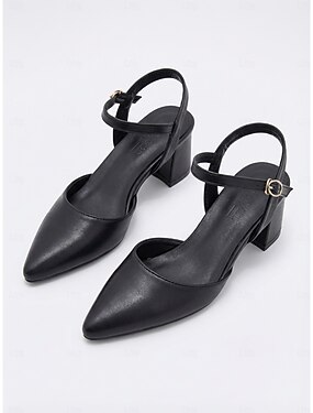 Décolleté nere da donna professionali con punta affusolata e cinturino posteriore - eleganti scarpe con tacco a blocco e cinturino regolabile alla caviglia per riunioni di lavoro e occasioni formali.