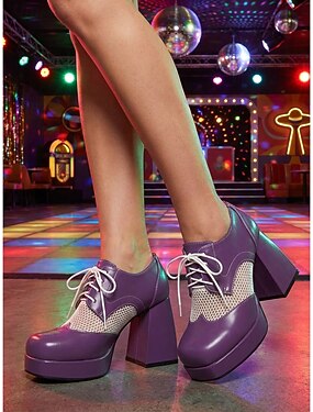 Sandali con plateau da discoteca retrò anni '70 da donna: sandali con plateau stringati rossi con dettagli in rete per feste in discoteca, eventi in discoteca &abiti da palcoscenico glamour