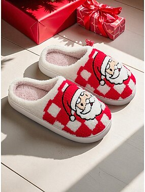 pantofole natalizie da donna con motivo di Babbo Natale, calde pantofole da casa per il comfort domestico durante le vacanze invernali