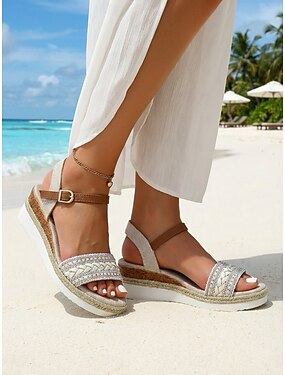 sandali con plateau boho da donna con cinturini intrecciati e dettagli in strass - comode scarpe estive con zeppa per uscite casual