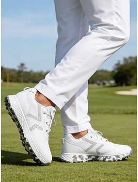scarpe da golf bianche senza tacchetti da uomo, vestibilità comoda e traspirante, suola con trazione stabile, stile minimalista e performante per golf e camminate