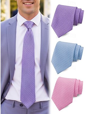 Cravatta da uomo in poliestere, motivo a griglia piccola, vari colori, lunghezza regolabile, adatta per matrimoni, lavoro e pendolarismo