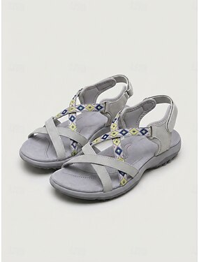 Sandali sportivi da donna grigi con supporto plantare – comodi sandali da passeggio con cinturino regolabile in velcro, scarpe casual leggere e antiscivolo per viaggi e attività all'aperto