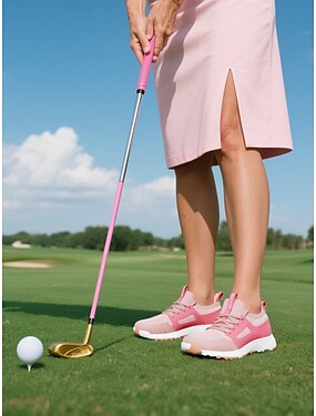 Scarpe da golf rosa leggere da donna con rete traspirante: eleganti calzature sportive con lacci per partite di golf casual, campi pratica o eventi in country club