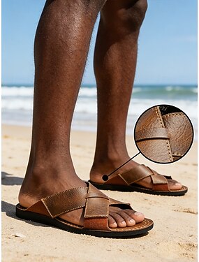 sandali da spiaggia in pelle da uomo: morbida pelle sintetica, plantare imbottito, comfort slip-on, cinturini traspiranti per uomo, ideali per spiaggia, piscina, viaggi estivi e abbigliamento casual all'aperto