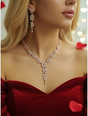 set di collana e orecchini a foglia con strass dorati da donna: eleganti gioielli scintillanti per feste e serate