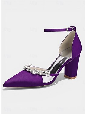 Décolleté da donna viola in raso con punta a blocco e cinturino alla caviglia con strass, perfette per cocktail party e matrimoni. &eventi serali