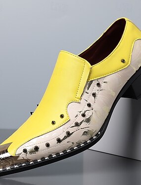 scarpe slip-on da uomo in similpelle – colore giallo e nero con dettagli a spillo, calzature alla moda per audaci celebrazioni nuziali e occasioni speciali
