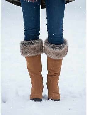 stivali invernali da donna color cachi con risvolto in pelliccia: stivaletti casual ed eleganti con morbida fodera in pelliccia sintetica, comodi e caldi per l'uso invernale, ideali per l'uso quotidiano casual e per le vacanze invernali