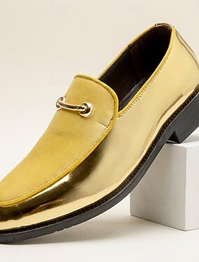 Mocassini da uomo color oro metallizzato, modello slip-on, a punta, eleganti e lucenti, calzature formali per uomini alla moda, ideali per matrimoni, balli di fine anno, spettacoli teatrali, feste e occasioni speciali.