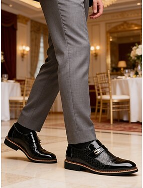 mocassini da uomo in vernice nera, design elegante con fibbia dorata, scarpe slip-on di lusso per occasioni formali e speciali