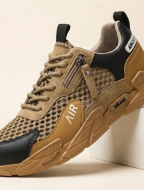 Sneakers da uomo color kaki traspiranti in mesh con lacci, scarpe da corsa e da passeggio leggere e comode, stile sportivo casual da uomo, ideali per attività all'aperto, viaggi e uso quotidiano.
