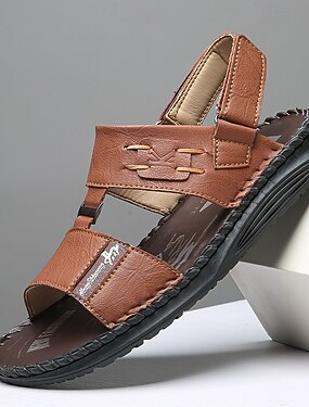 sandali da pescatore in similpelle color cuoio da uomo: scarpe estive traspiranti per uscite informali e abbigliamento da spiaggia