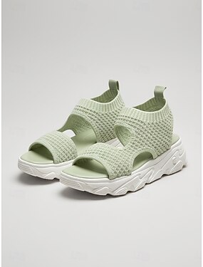 Sandali sportivi da donna verdi leggeri in maglia – suola spessa e traspirante con imbottitura, scarpe casual da passeggio per l'estate e i viaggi &comfort quotidiano