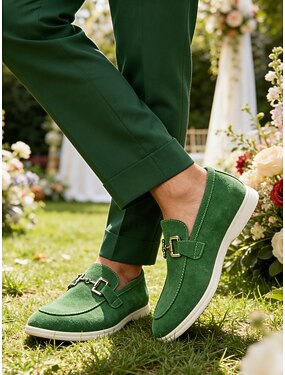 scarpe slip-on verdi da uomo con fibbia, scarpe casual eleganti per uomini alla moda, perfette per incontri informali, feste, abbigliamento quotidiano e matrimoni