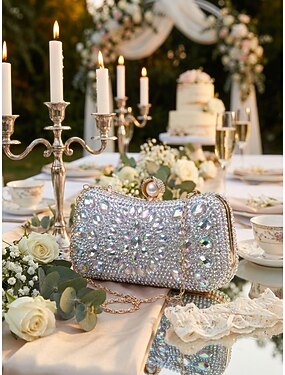Elegante borsa da sera in cristallo da donna con catena in argento, dettagli con perline e cerniera di alta qualità, perfetta per matrimoni, feste ed eventi formali.