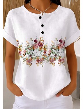 Maglietta Waffle da donna maglie a maglia testurizzata color block grafica geometrica piante elegante classica manica corta girocollo standard casual fine settimana bianco e nero bianco verde chiaro