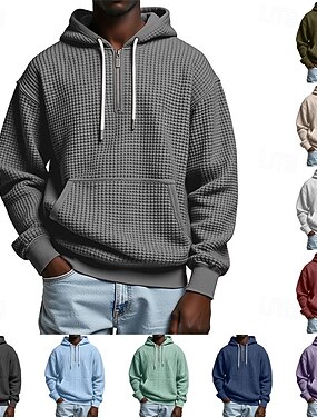 Per uomo Felpa con cappuccio Felpa con cappuccio a zip intera Felpa con cappuccio a nido d'ape Aalbicocca Nero Bianco Verde chiaro Verde militare Con Cappuccio Semplice Testurizzato Sport & Outdoor