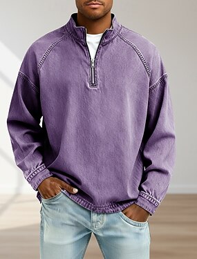 Per uomo Camicia 100% cotone lavaggio acido Maglietta Manica Lunga Collo alla coreana Autunno & Inverno Primavera Autunno Semplice Vintage Streetwear Casual Con zip Tinto in capo Sbiadito Casuale