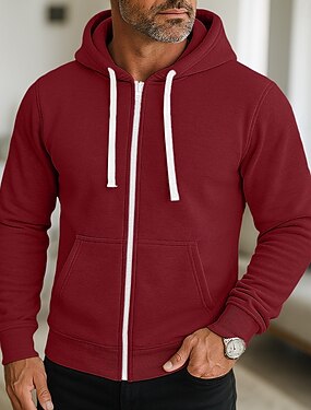 Per uomo Felpa con cappuccio Felpa con cappuccio a zip intera Rosso bordeaux Nero Blu marino Grigio chiaro Grigio scuro Con Cappuccio Semplice Con zip Sport & Outdoor Casuale Quotidiano Streetwear