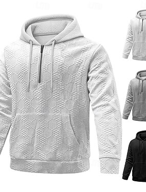 Per uomo Jacquard Felpa con cappuccio Felpa con cappuccio e zip corta Nero Bianco Grigio Con Cappuccio Semplice Testurizzato Sport & Outdoor Casuale Quotidiano Streetwear Cool Abbigliamento Sportivo