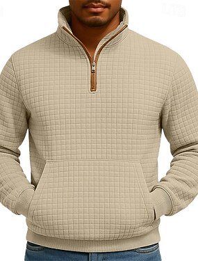 Per uomo Jacquard Maglia Maglione Felpa con zip corta Nero Bianco Cachi Grigio Bavero Semplice Cerniera Testurizzato Sport & Outdoor Casuale Quotidiano Streetwear Cool Abbigliamento Sportivo