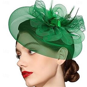 Cappello in Organza Piume Kentucky Fascinatori Copricapo con Piuma Fiore Strati 1 PC Matrimonio All'aperto Corsa di Cavalli Copricapo per impressionare Abito da corsa